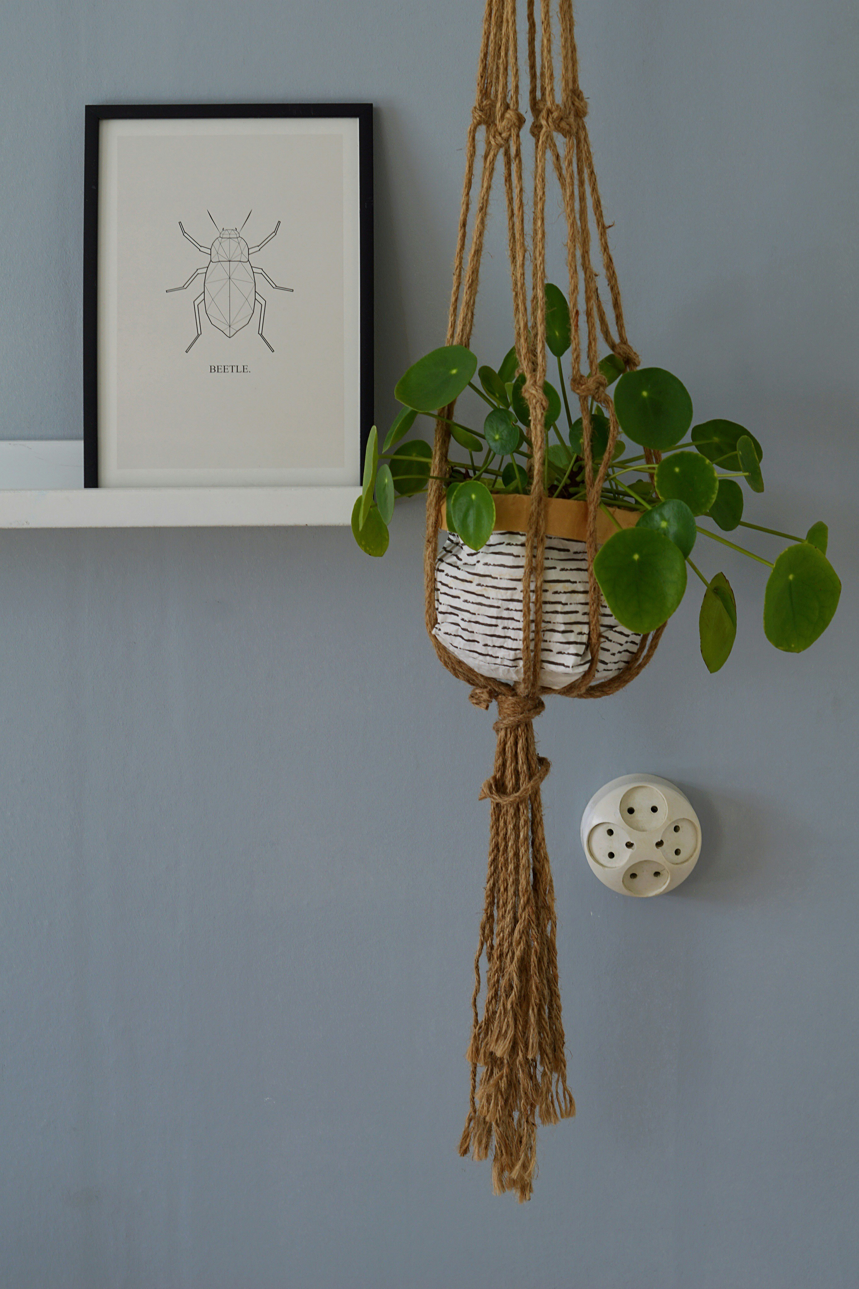 Select the right spot for your hanging basket. Try to grow plants that can perform well under indirect sunlight such as burro's tail, turtle vine, etc. to maintain the quality of the pot.